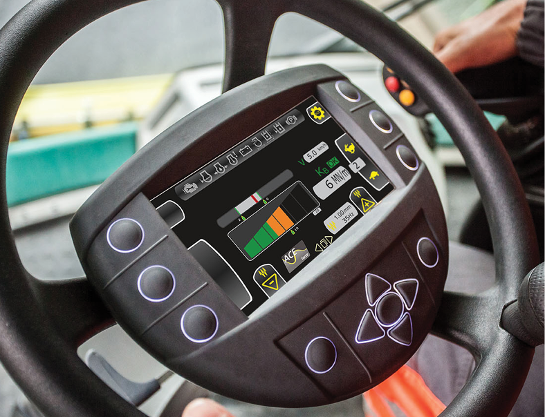 תא המפעיל מצויד בלוח פיקוד ותצוגה במרכז גלגל ההיגוי, עם שלושה מסכים רב-תכליתיים: